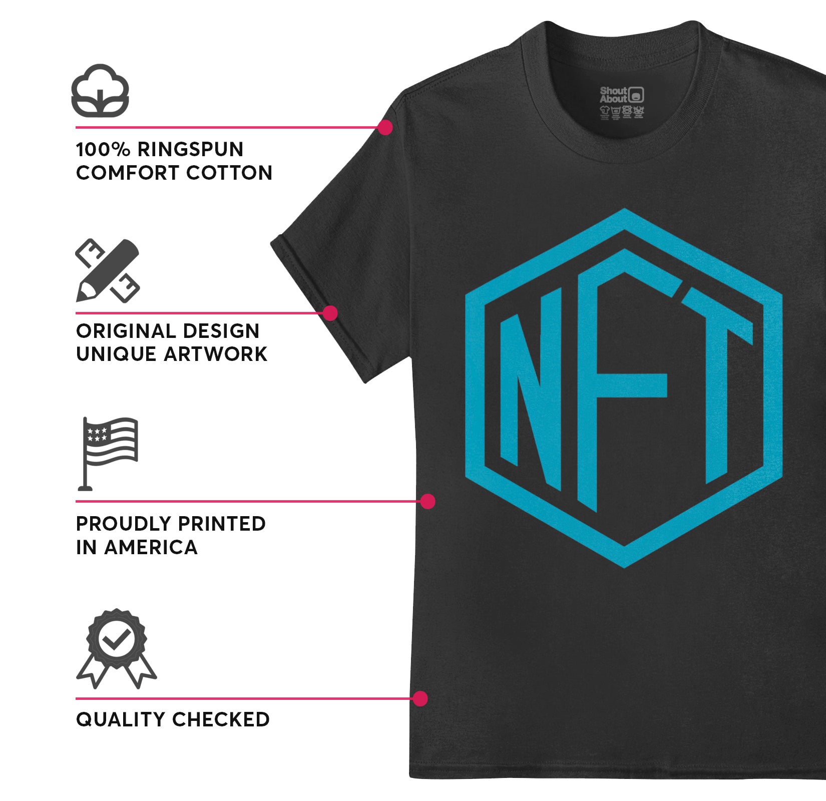 100% combed ringspun cotton Machine Washable NFT HERO: NFT's are the future of collectibles, art, and wealth generation. Show the world you were here first with the official NFT logo. QUALITY WORTH SHOUTING ABOUT: Our shirts are screen printed in the USA with attention to detail and quality control that ensures a clean print in vibrant contrast and durable quality so our messages and designs shout and keep on shouting! UNIQUE DESIGN: Our team produces original artwork for every design, so you can own or gift a distinct design that are sure to bring a smile. Our shirts and hoodies make great gifts or get one for yourself to wear at home, work, the gym, heading out or chilling at home SATISFACTION GUARANTEED: We’re sure you’ll be happy with your shirt, If you are unsatisfied for any reason, we will provide an immediate exchange.